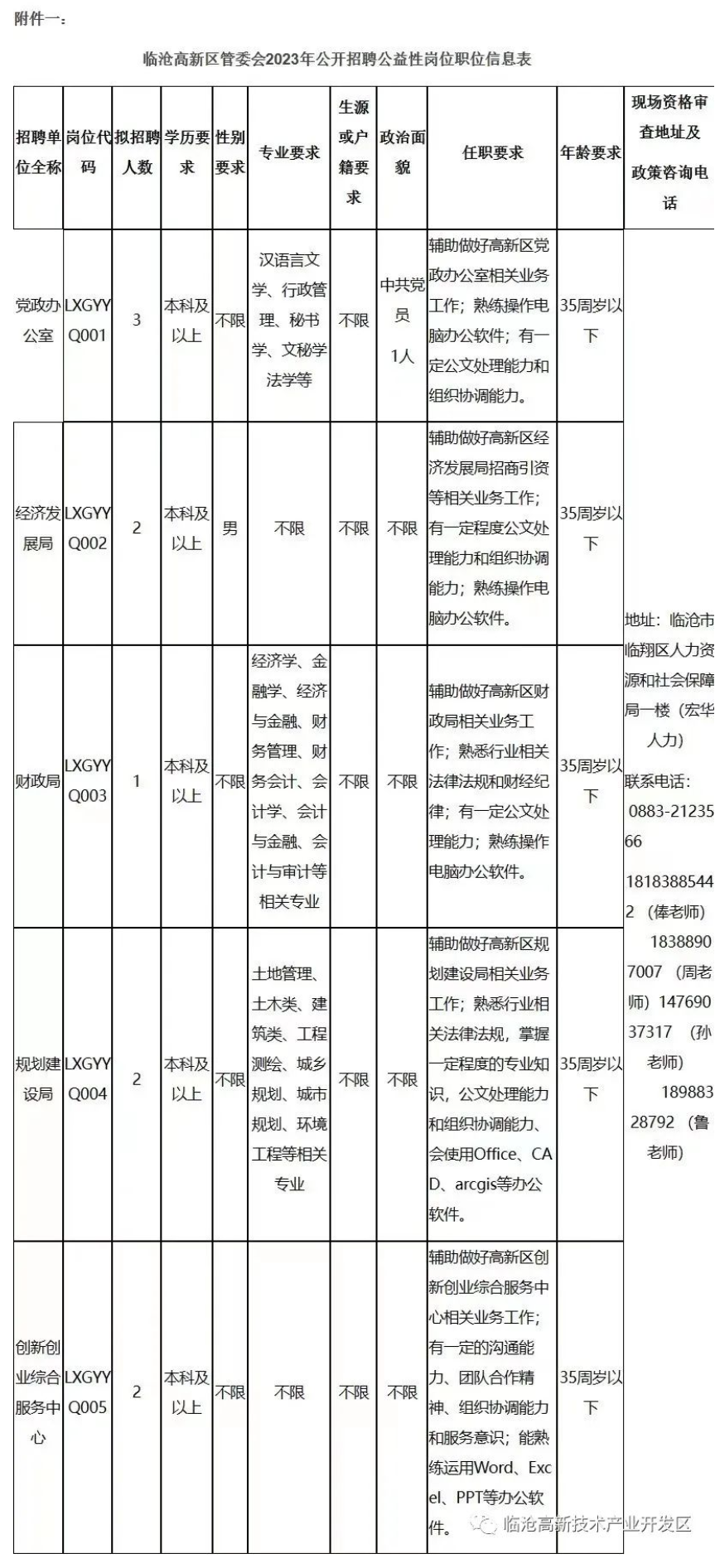 临沧高新技术产业开发区管理委员会2023年公益性岗位招聘公告
