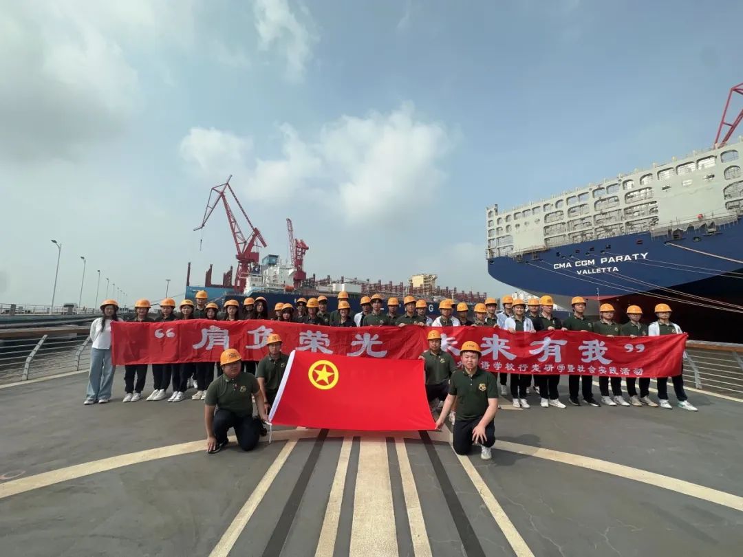 在工作人员的带领下,西外学子们坐上大巴车参观了造船基地的现场。当巨大的船坞和高大的龙门吊展示在眼前时,学生们切身感受到了大国重器带来的震撼。看着工人们用一块块无生命的钢板建造成在大海里航行的有灵魂的舰船,心中油然升起对于“中国制造”和“中国智造”的信心与民族自豪感。