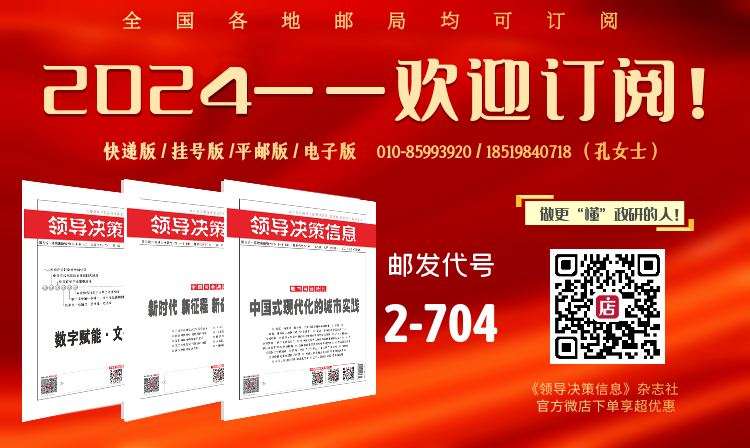 2023年《领导决策信息》周刊继续推出电子刊微店专订服务,当期出版当期推送,通过邮箱推送或微信直发,阅读更便捷,时效性更强,欢迎 点击此处订阅。