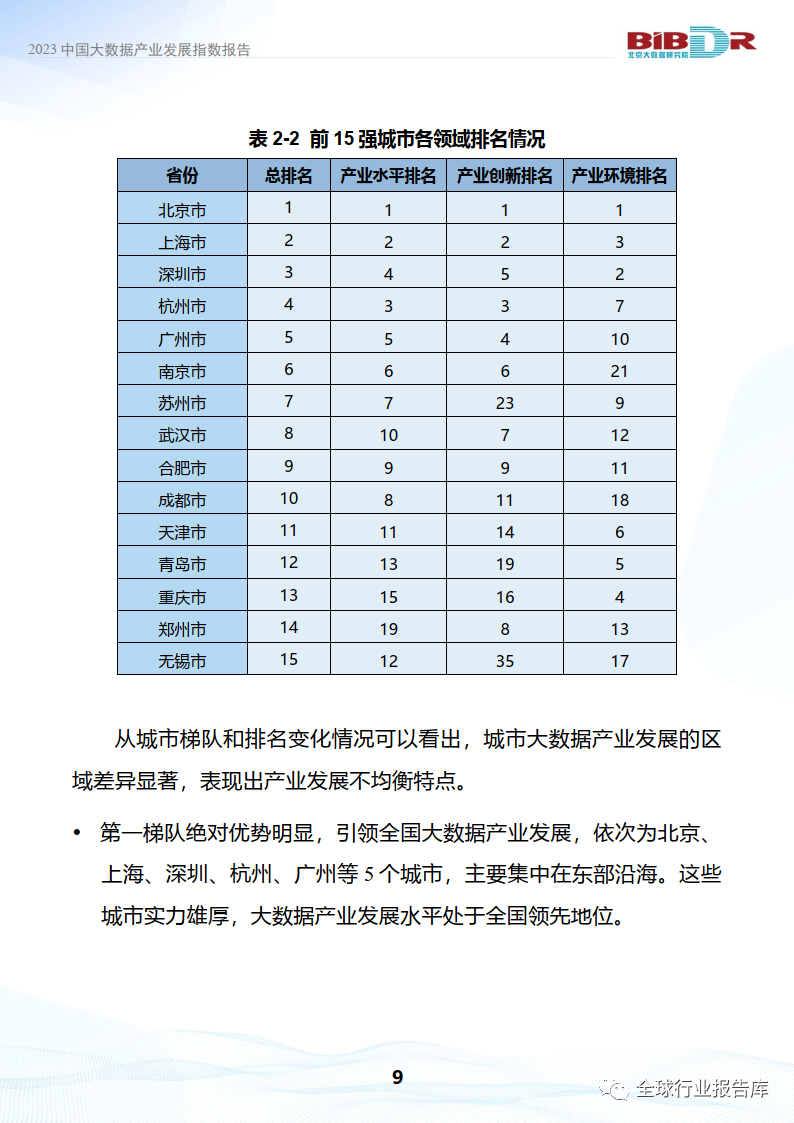 •从城市梯队和排名变化情况可以看出,城市大数据产业发展的区域差异显著,表现出产业发展不均衡特点。