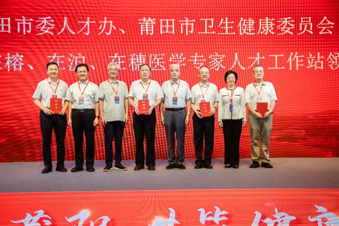 福建省人民政府原副省长李川,福建省政协原副主席、省工商联原主席李祖可,莆田市委常委、组织部部长袁素玲,莆田市政府副市长胡国防,莆田市委组织部副部长、市公务员局局长方振涵,莆田市卫健委党组书记、主任姚冰珊为第二轮工作站领导代表颁发聘书。