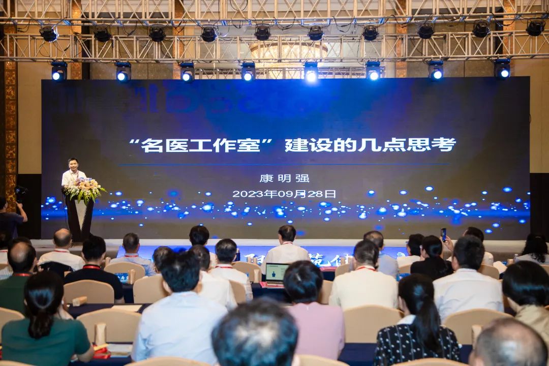 莆田市在榕医学专家人才工作站副站长康明强做了《做好名医“师带徒”工作室的几点建议》主题发言。