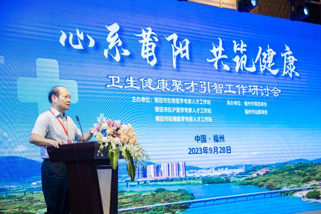 9月28日下午,为提高莆田市医疗水平,方便老百姓就医,助力健康莆田建设和生命健康产业的发展。由莆田市在榕医学专家人才工作站、莆田市在沪医学专家人才工作站、莆田市在穗医学专家人才工作站共同主办,福州市莆田商会、福州市仙游商会共同承办的“心系莆阳 共筑健康”卫生健康聚才引智工作研讨会暨第二轮医学专家人才工作站组织领导颁发聘书的活动在福州市香格里拉酒店隆重召开。