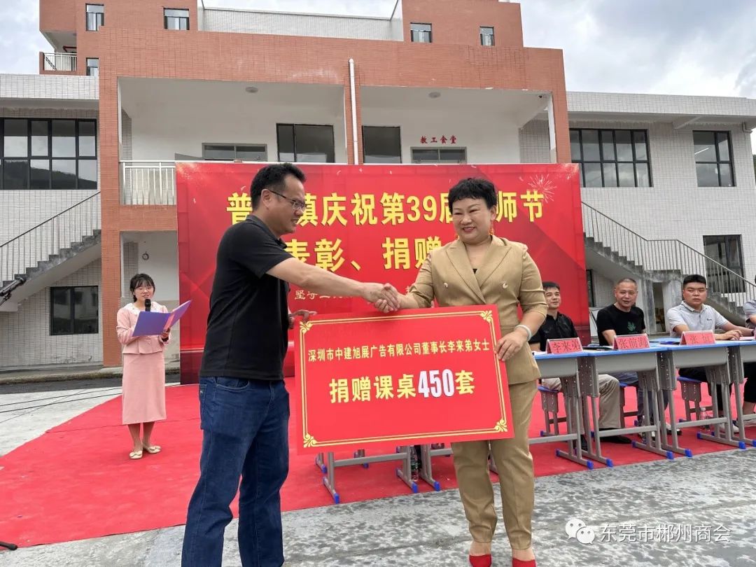 【郴商公益】2023年9月8日,商会常务副会长李来弟向桂东县普乐九年制学校捐赠课桌450套。