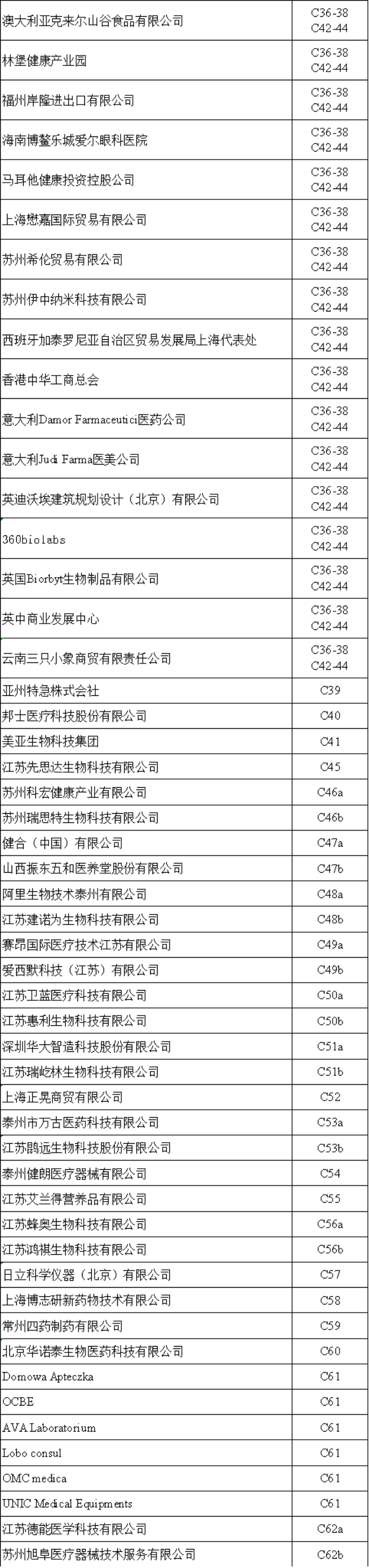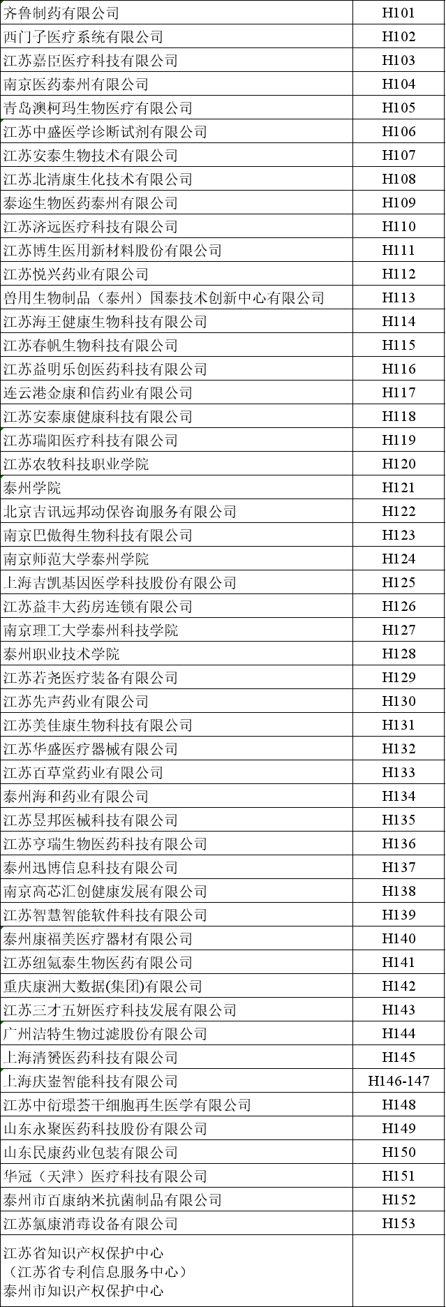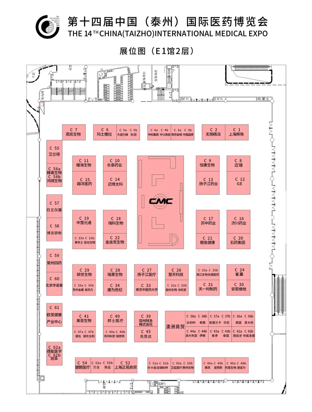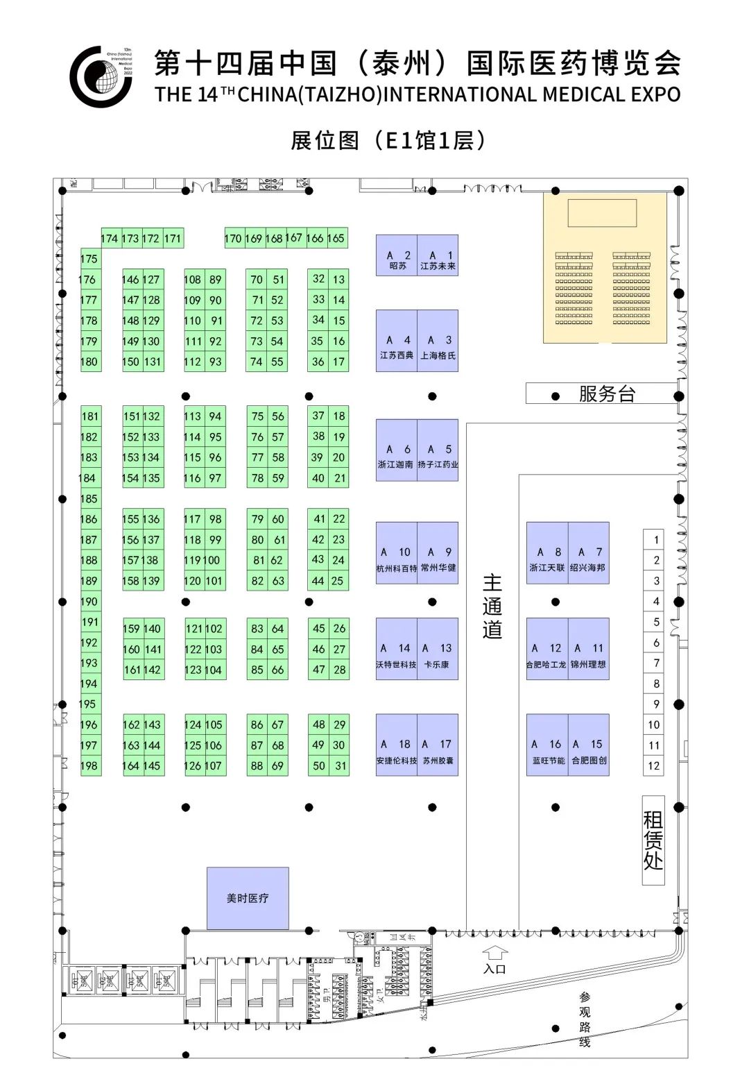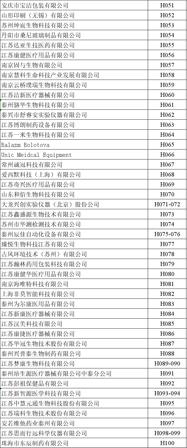 第十四届中国(泰州)国际医药博览会展位图、展商名录