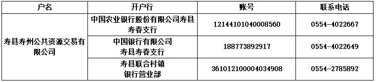 寿县寿州公共资源交易有限公司竞租保证金账号一览表