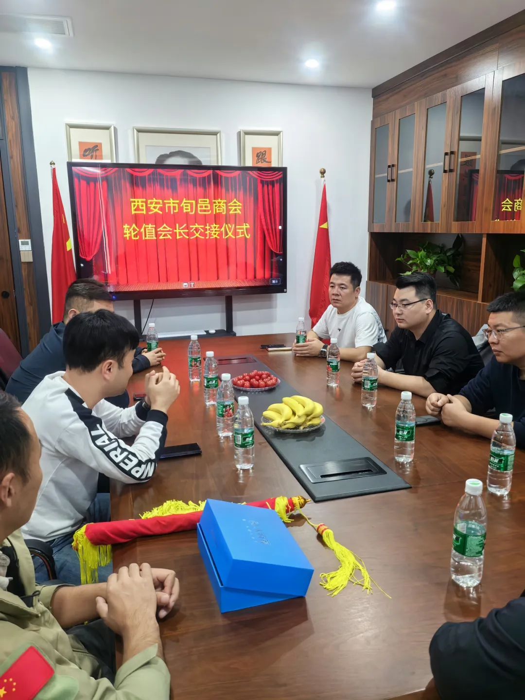 会议现场举行了简短而庄重的交接仪式,九月份轮值会长杨建伟将“西安市旬邑商会轮值会长”会旗交回给会长宋涛,随后会长宋涛将会旗郑重移交给十月份轮值会长刘宝亮,两任团队合影留念,交接仪式顺利完成。