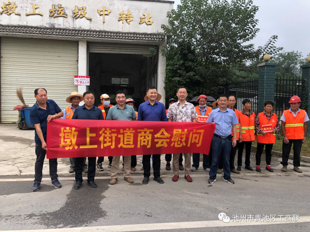 2023年9月28日上午,墩上街道商会会长刘青、副会长吴伟、孙兵等到墩上垃圾清运站看望慰问一线保洁员,并送去中秋的祝福。街道办事处主任朱靖宇、党工委副书记韩明启参加活动。