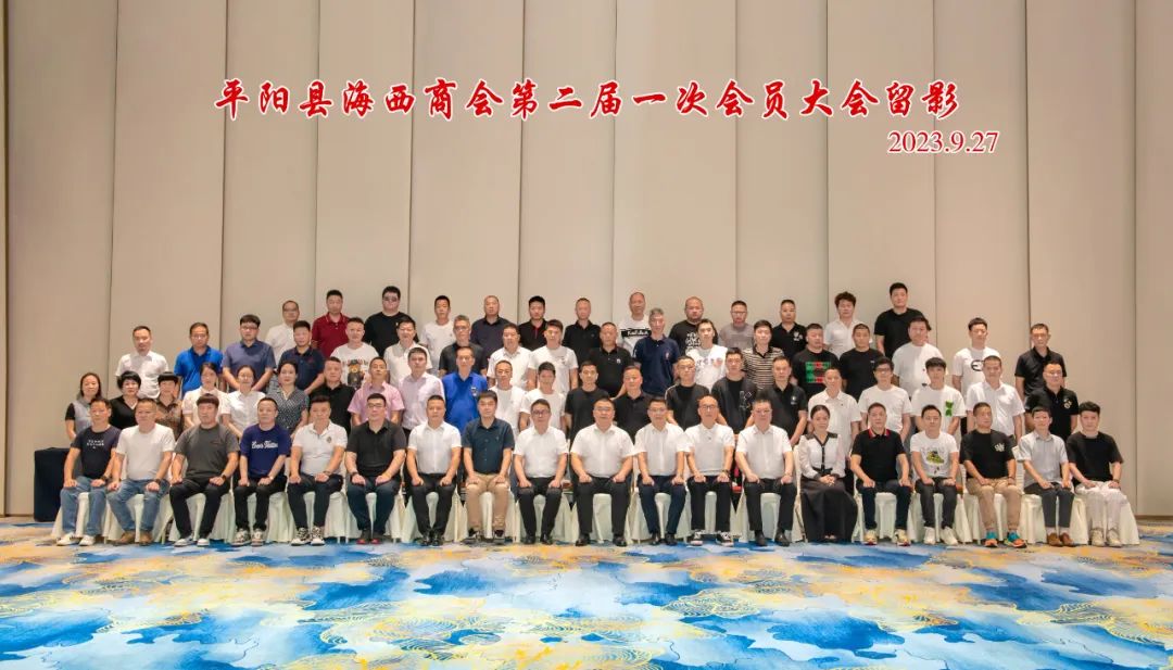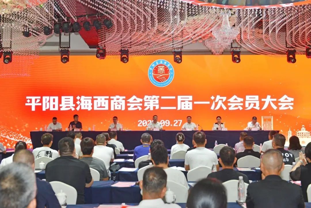 9月27日,海西商会举行第二届一次会员大会,百余名海西商会会员代表共聚一堂,共谋发展。平阳县委常委、统战部部长周炜,县委统战部副部长、县工商联党组书记王家起,县工商联秘书长丁志峰,海西镇党委书记章志刚、党委委员黄静、唐瑞行等领导出席并指导换届工作。