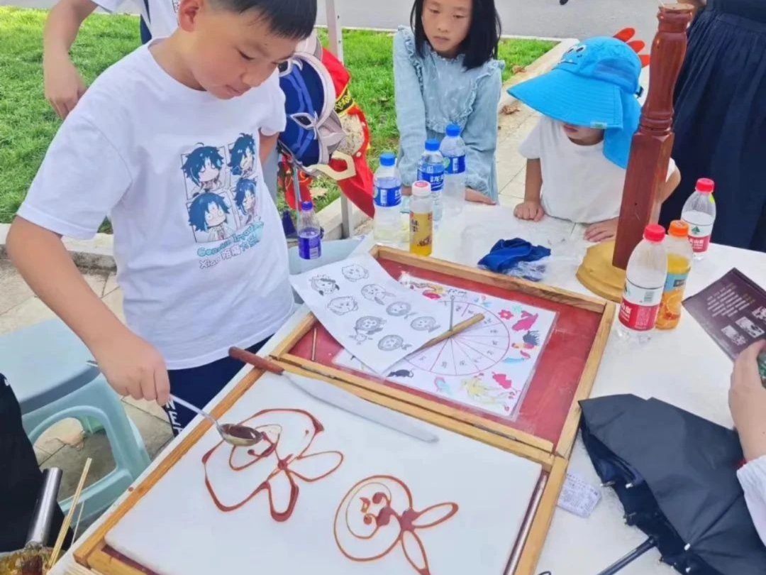 这次我们举办了“探寻中国传统文化宝藏”室外打卡活动,特意邀请了传承人李海老师来创作百工灵糖画。爱吃糖的孩子有福啦,快来欣赏下,是不是很可爱呢!