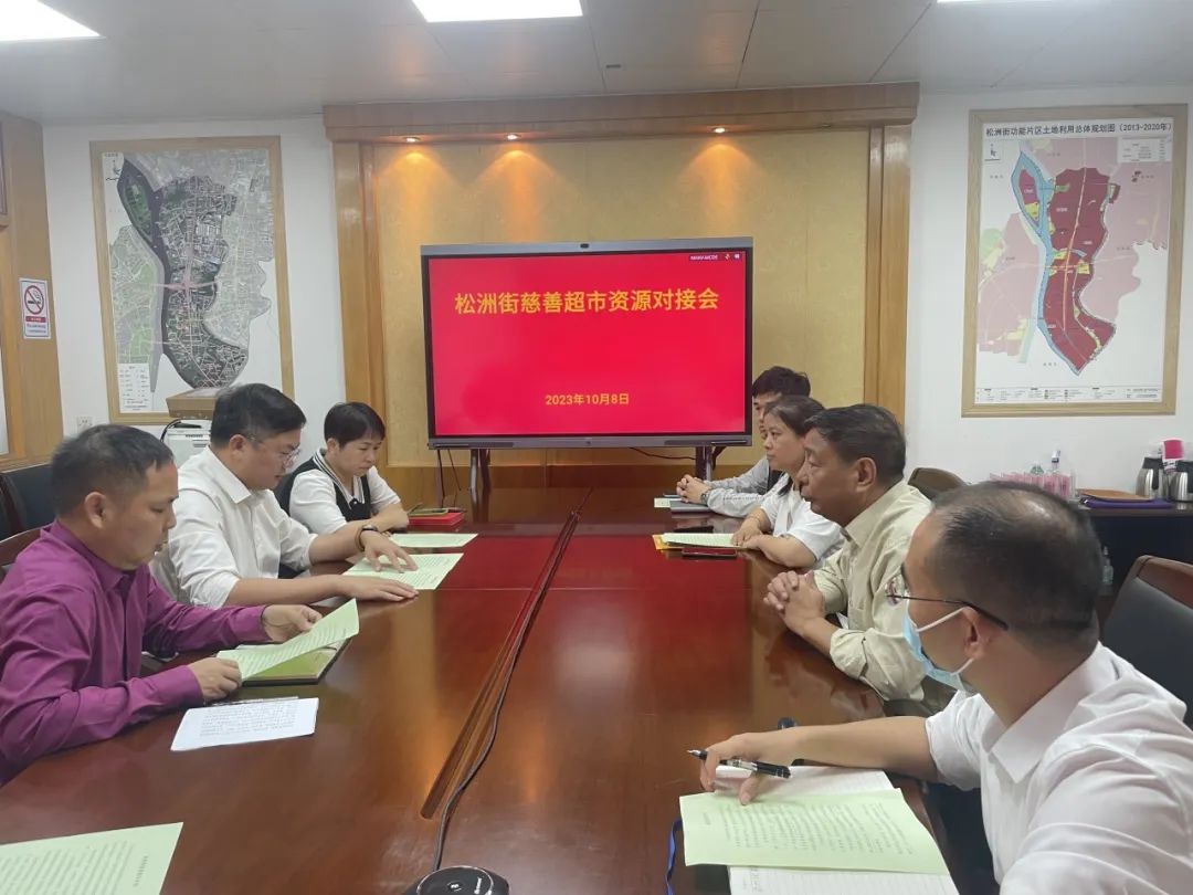 10月8日下午,街道办事处主任汤伟球召开松洲街慈善超市资源对接会,推进松洲街商会与松洲街慈善超市联动搭建资源共享公益平台。街二级调研员陈桂兴,街公服办负责人王维,松洲街商会秘书长欧帆和街社工站负责人参加。