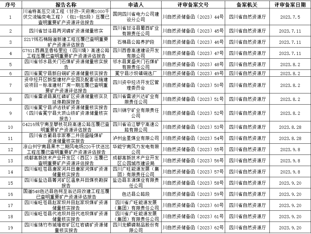■ 省厅公布今年第二季度矿产资源储量评审备案情况