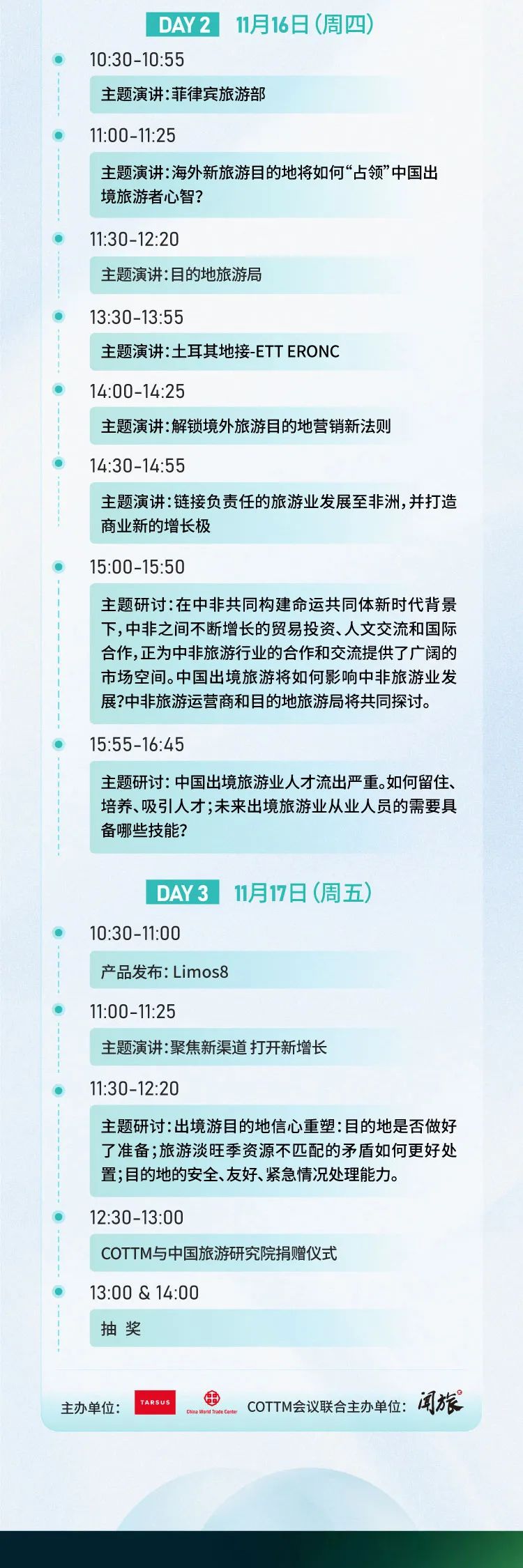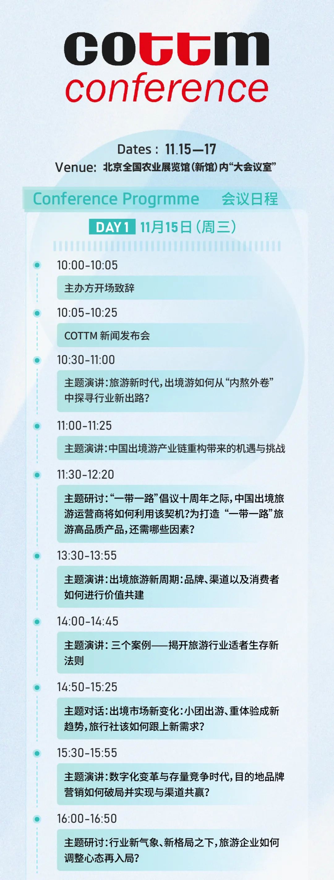 2023中国出境旅游交易会(COTTM)以“重构中国出境旅游行业供应链”为主题,将于11月15-17日在北京全国农业展览馆(新馆)举行,为中国出境旅游行业上下游供应链重构发挥展会平台对接全球资源的价值。