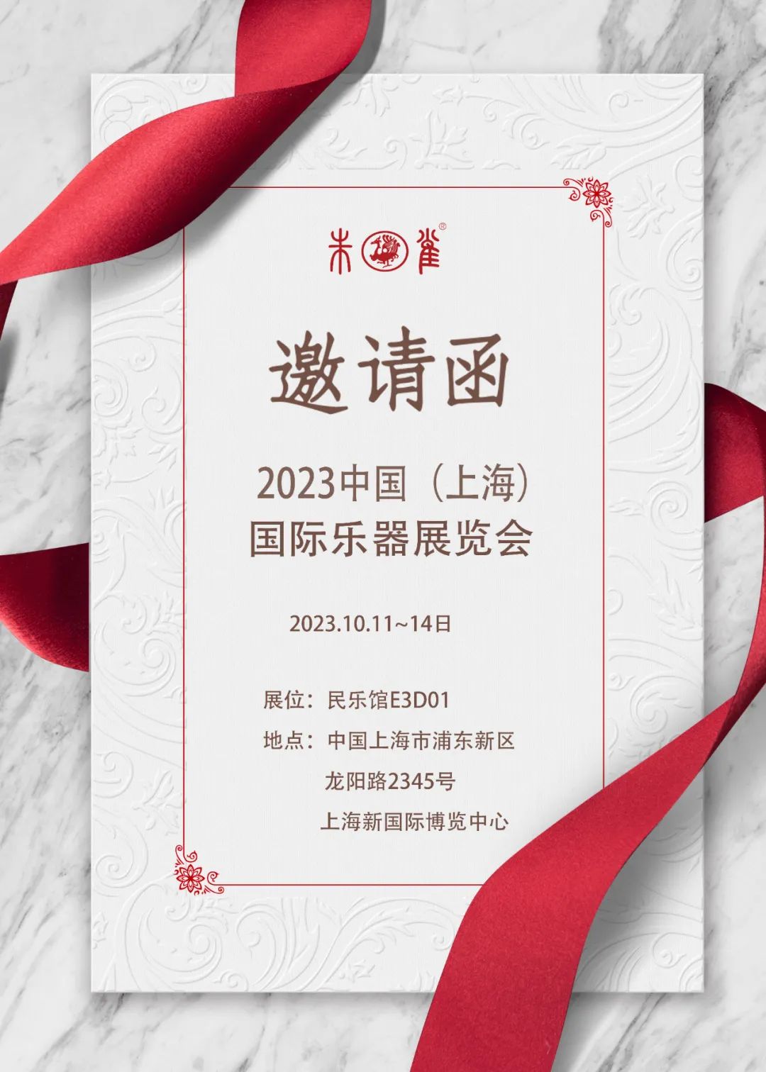 朱雀乐器展位号:E3号馆D01