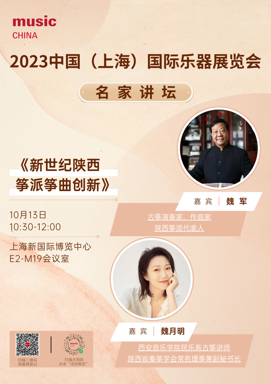 西安音乐学院魏军教授、魏月明老师将于10月13日在中国(上海)国际乐器展览会——“名家讲坛”活动中,分享《新世纪陕西筝派筝曲创新》主题。
