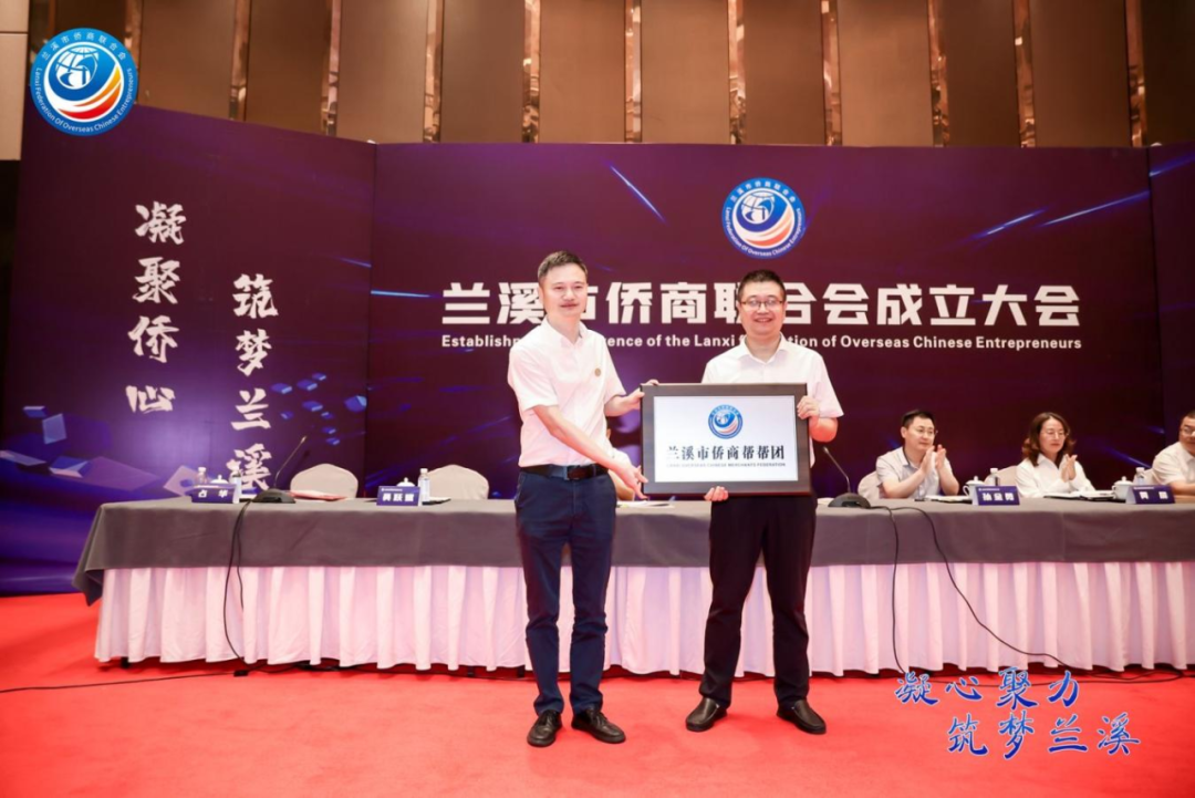 市委统战部副部长、市侨联党组书记张春阳为兰溪市侨商联合会授牌,对兰溪市侨商联合会的成立以及首届班子的产生表示热烈的祝贺,并指出,兰溪市侨商会的成立必将为兰溪海内外侨商搭建起一座交流合作的桥梁,为兰溪各项事业的发展注入了侨界力量,希望侨商群体要主动融入大局,强化自身建设,规范内部管理,广泛开展联谊,把侨商会打造成为兰溪侨商侨企海外发展的支点、抱团发展的高地。