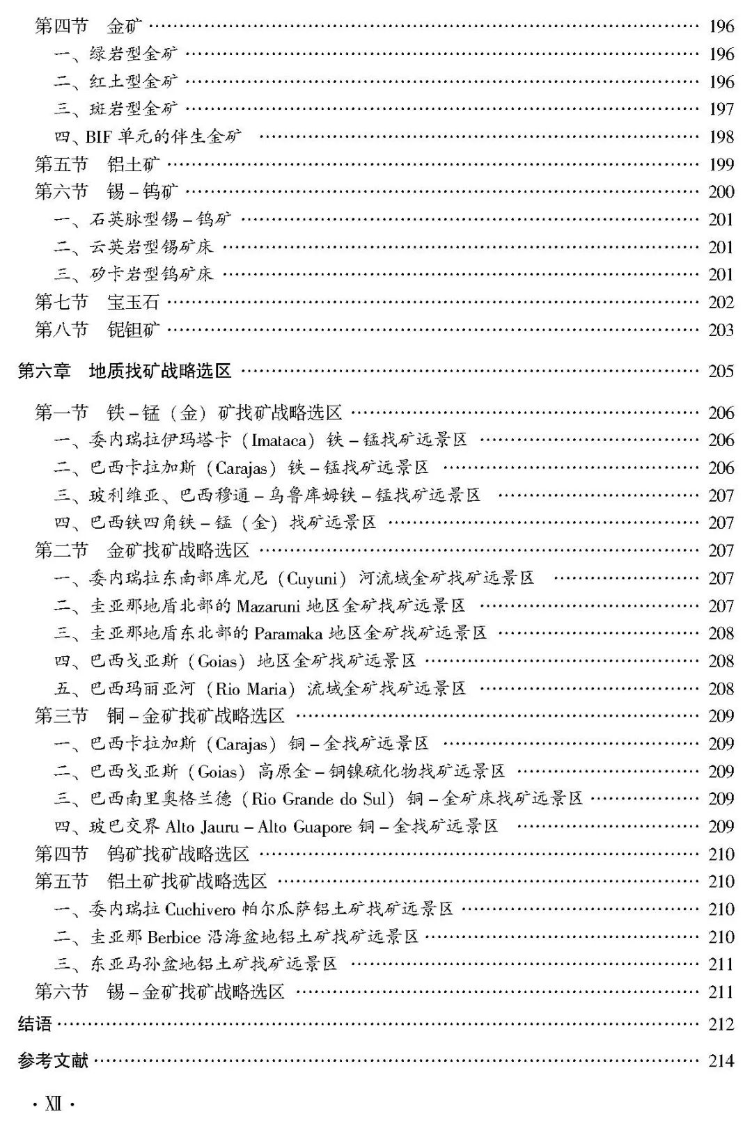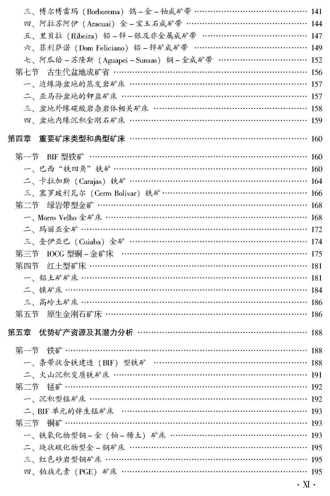 本书对南美克拉通的区域成矿地质背景、区域成矿地质特征进行了综合总结,将南美克拉通划分为11个大地构造单元,按成矿特征划分为11个Ⅱ级成矿省,进一步分出28个Ⅲ级成矿区带、66个Ⅲ级亚带或Ⅳ级成矿区带。重点以Ⅲ级成矿区带(Ⅲ级亚带)为单元,综合总结了其成矿地质特征、主要矿产资源特点、代表性矿床特征和重要远景区资源前景。解剖研究了15个典型矿床,列举了巴西卡拉加斯成矿区和铁四角成矿区的成矿研究成果。针对南美克拉通优势矿产资源的潜力进行了分析,形成了16处重要的找矿战略选区,并提出了找矿工作建议。