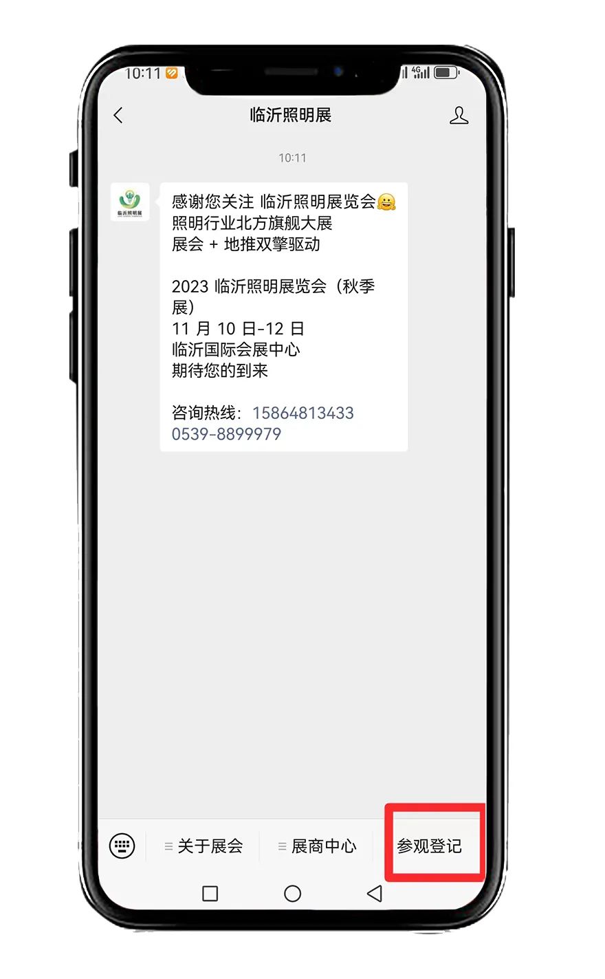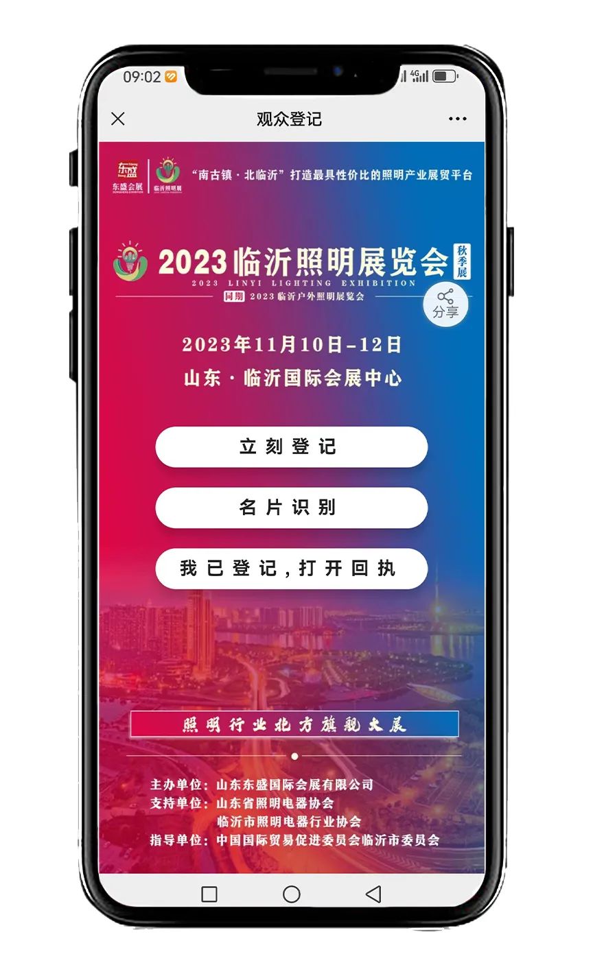 1、扫描或长按识别下方二维码,关注微信公众号“临沂照明展”