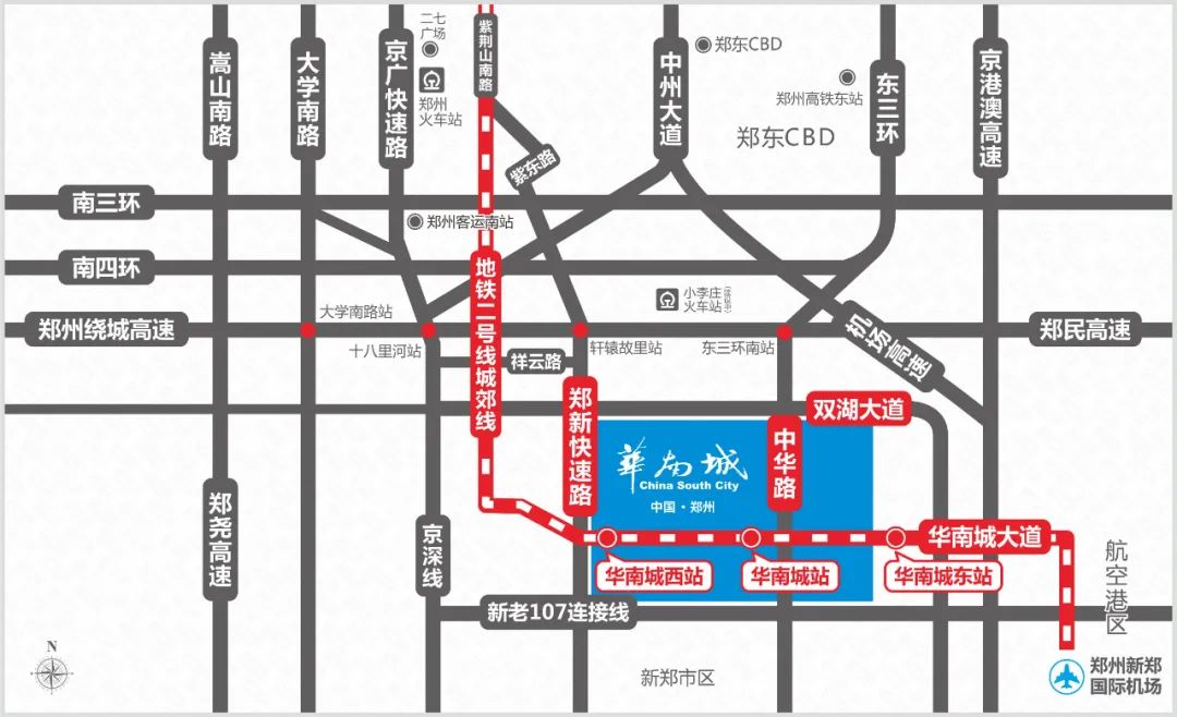 2.郑州绕城高速-东三环南站-中华路-华南城