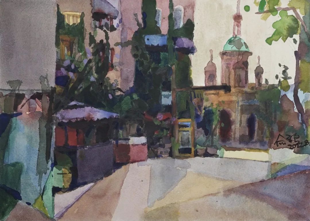 ▲ 俞学良,印象喀什1,纸本水彩,32x41cm,2022