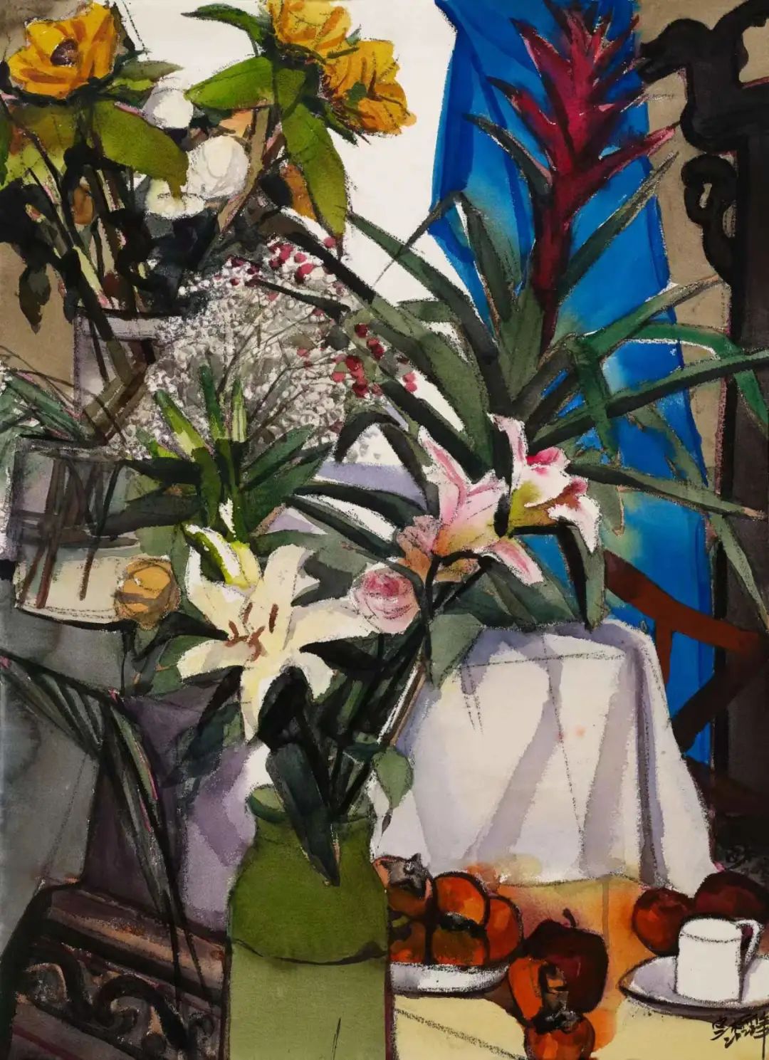 ▲ 廖定标,百合花开,纸本水彩,76x105cm,2022