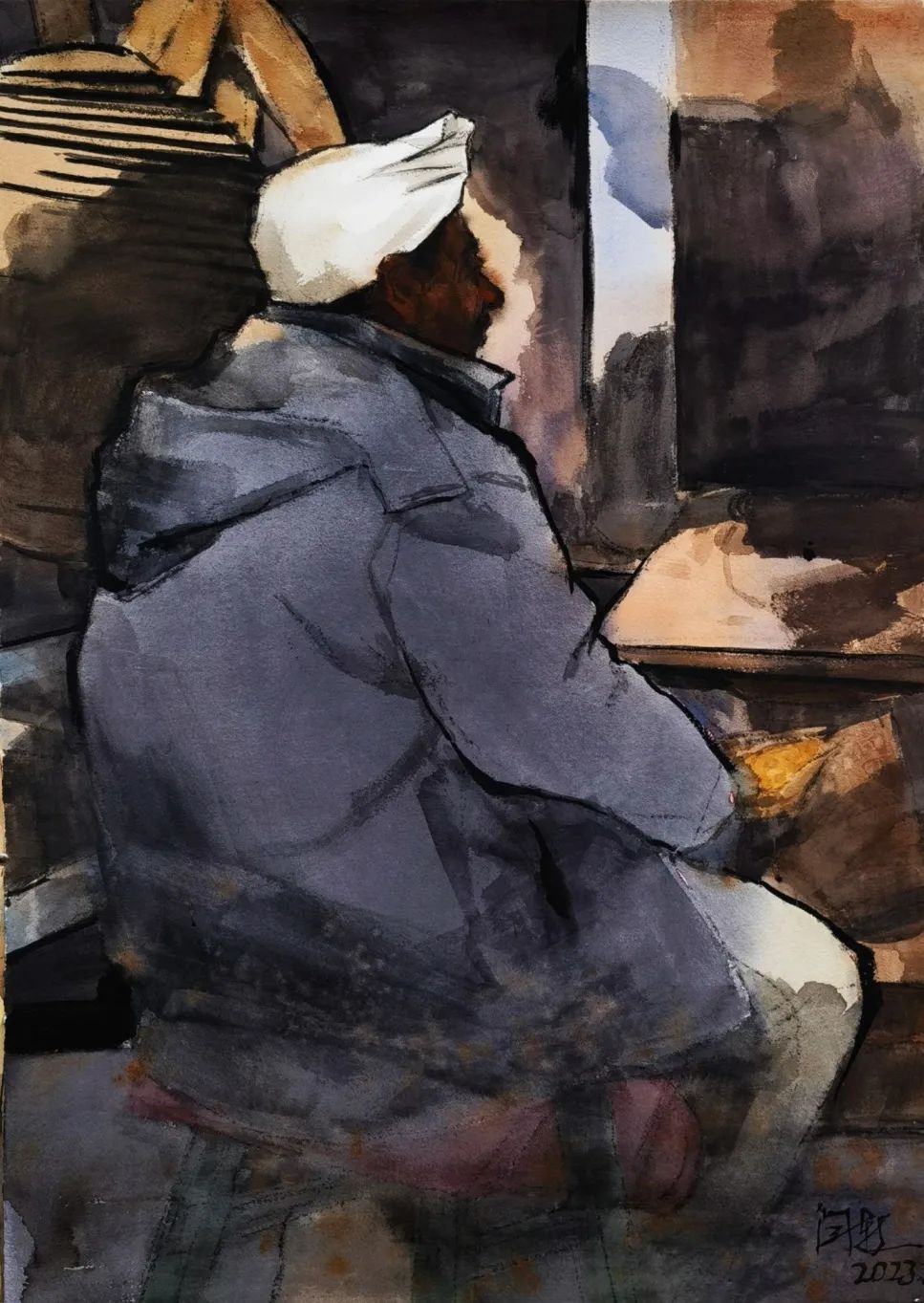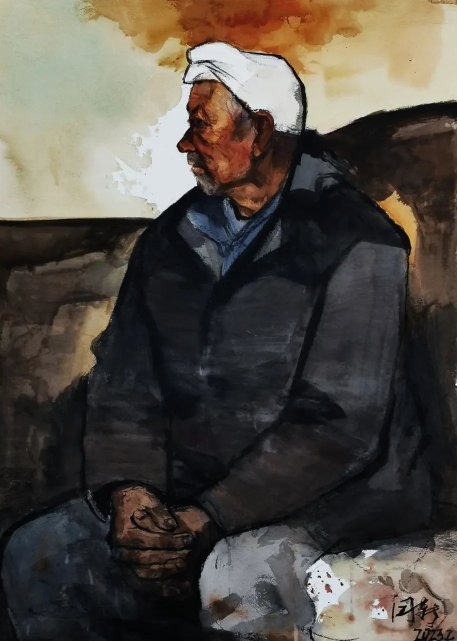 ▲ 闫新,绥德老汉,纸本水彩,75x105cm,2023