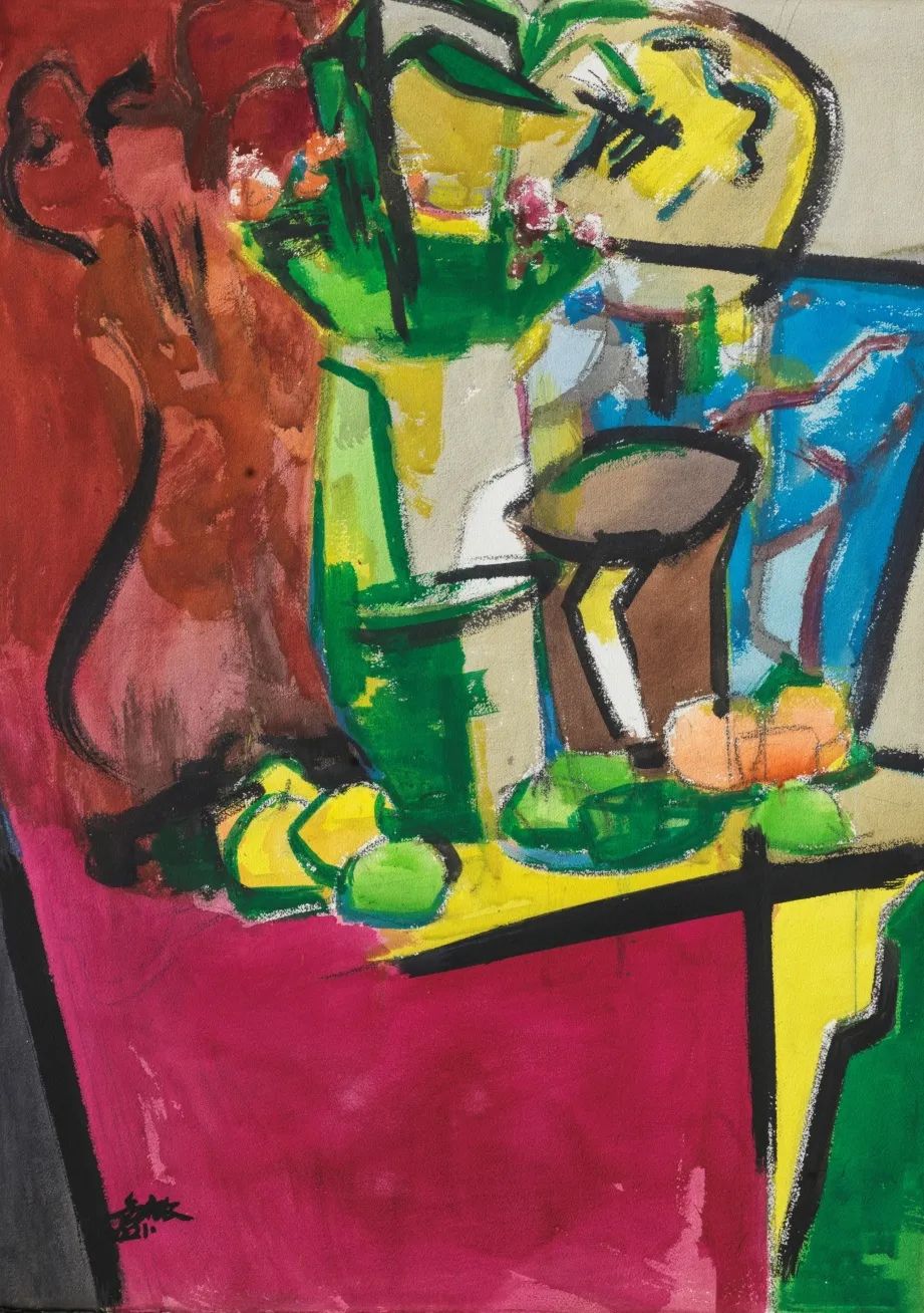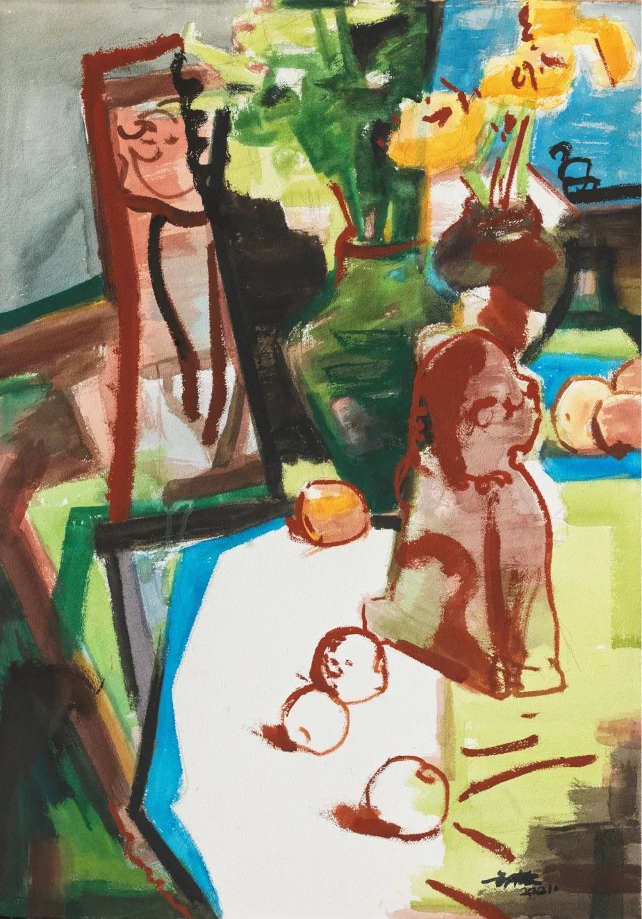 ▲ 邹亦农,静物与空间2,纸本水彩,105x75cm,2021