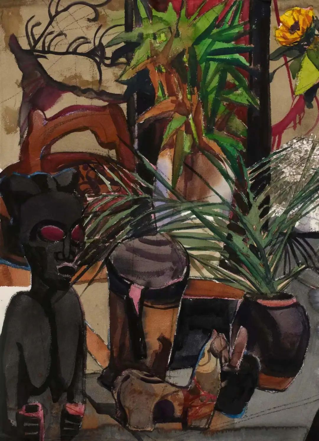 ▲ 廖定标,陶罐组合,纸本水彩,76x105cm,2022
