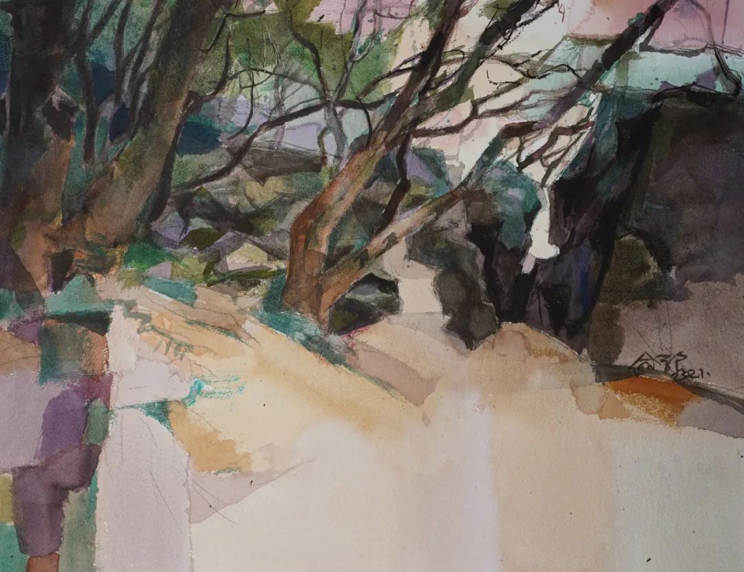 ▲ 俞学良,山深微有径,纸本水彩,44x56cm,2021