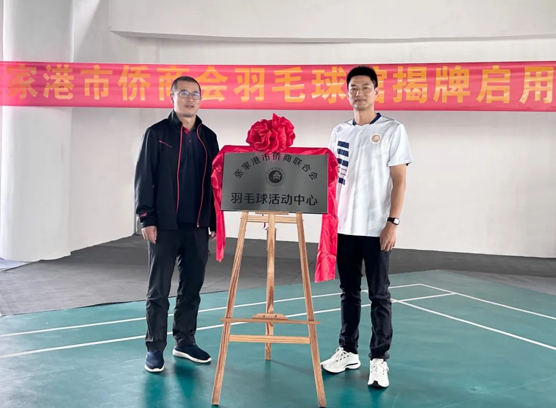 李峰、赵海荣共同为“张家港市侨商会羽毛球活动中心”揭牌。