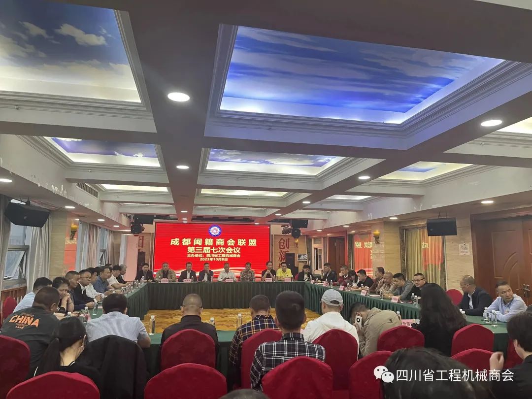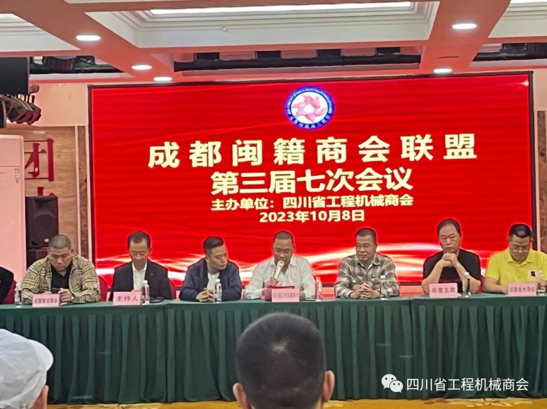 成都闽籍商会联盟第三届七次会议10月8日在金牛区南安大厦20层空中海鲜酒楼举行,四川省闽南商会、成都漳州商会、成都福建商会、成都南安商会、成都福州商会、成都泉州商会、成都惠安商会、成都龙岩商会、成都莆田商会、成都福鼎商会、成都石材产业商会、四川省福清商会、成都安溪商会、成都洛江商会、成都泉港商会、四川省建筑装饰商会共17家商会联盟的会长、秘书长出席会议,同时特邀四川省福建商会参加本次会议,四川省工程机械商会会长杨灿彬当值本次轮值主席。会议由成都闽籍商会联盟秘书长唐世才主持。