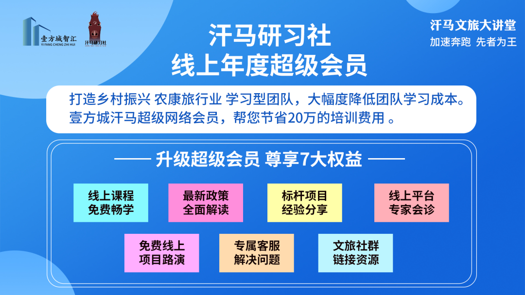 乡村振兴线上学习平台!邀请多位康养·文旅与乡村振兴领域国内外著名专家和具有代表性的康养·文旅与乡村振兴类项目操盘手,围绕康养·文旅产业与乡村振兴项目创建过程的顶层设计、盈利模式、策划规划、产业导入、运营及金融等核心问题展开,深入剖析具体操盘案例,为业界分享其经验与策略技巧,更具针对性与实操性,助推行业稳定有序发展。