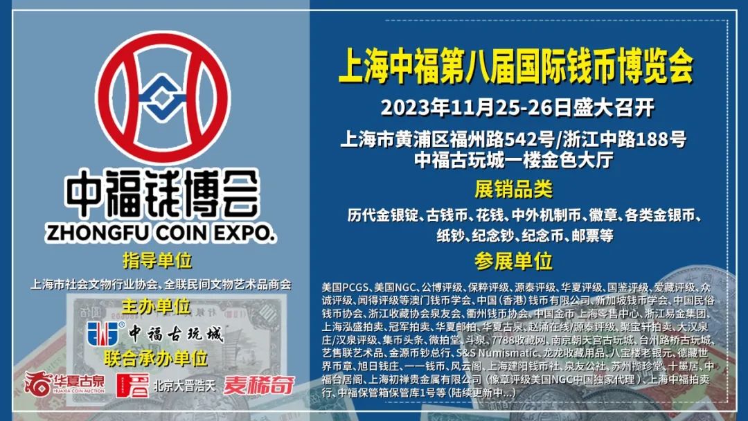 泉民期待的上海中福第八届国际钱币博览会即将隆重开!一场关于钱币的饕餮盛宴即将登陆申城,此次必定又将掀起一股钱币收藏热潮。