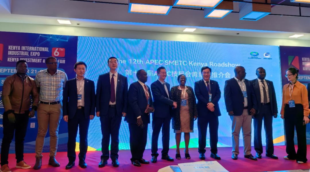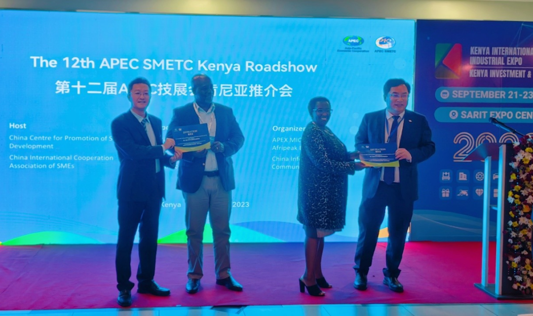 9月22日,第十二届APEC中小企业技术交流暨展览会(以下简称:APEC技展会)肯尼亚推介会在肯尼亚首都内罗毕举行。肯中经济贸易协会会长、中国路桥肯尼亚办事处总经理袁春坤,肯尼亚天顶中小企业协会秘书长基隆波(Kenn Kirombo),肯尼亚国家工商联合会贸易和投资部代表基迈米娅(Juliet Kimemiah)、政策宣传部代表穆齐利亚(Fredrick Mukilya)等参加活动并发言。