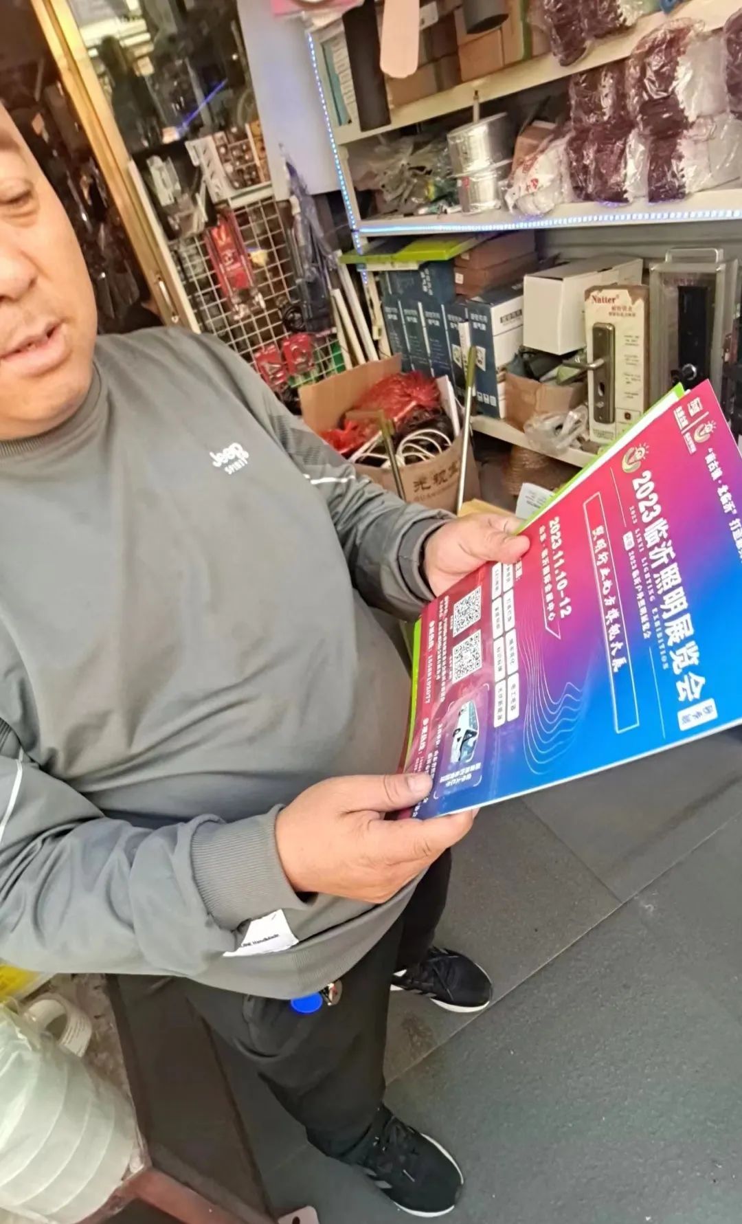 邀观人员连续几日在枣庄各大灯具市场用心为每一位老板做详细的展会推介,一对一宣传毫不含糊,众多经销商表示对展会有浓厚的兴趣并积极报名参观!