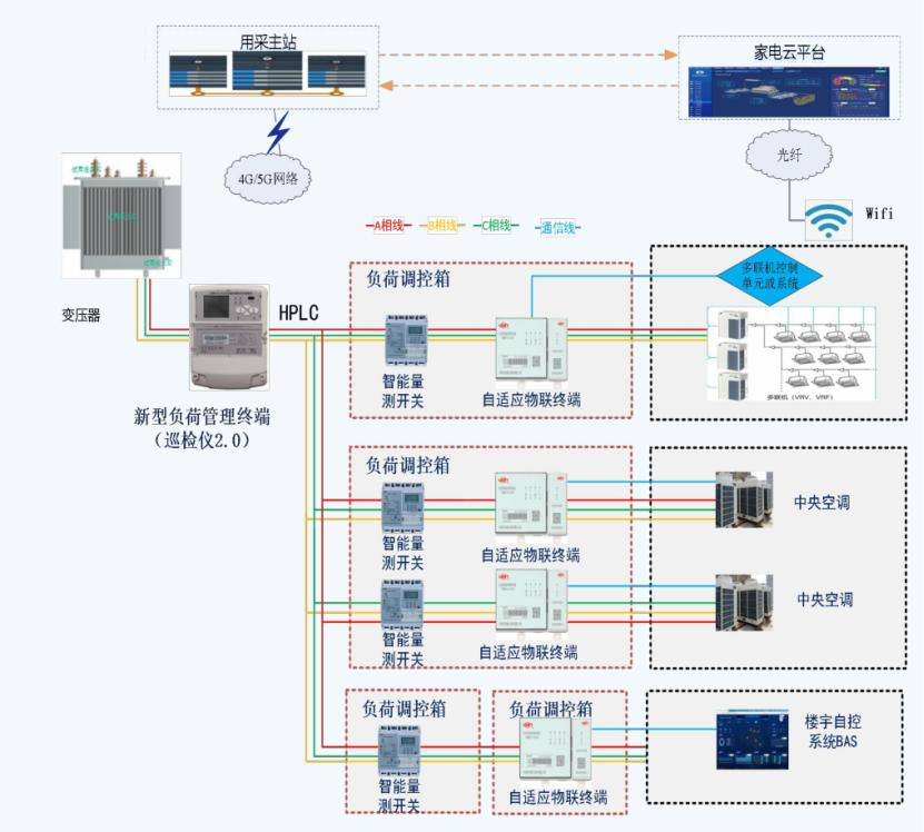 利用新型负荷管理终端精准预测负荷高峰时段,通过内置负荷管理APP柔性调节中央空调、壁挂式空调、楼宇热水器等大功率负荷,消除电网过负荷运行状态,确保极端条件下的电力系统安全稳定运行。