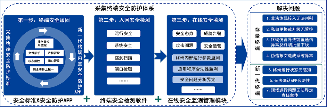 基于新一代采集系统(采集2.0)的采集终端安全监测特色微应用:提供基于采集2.0的终端APP安全加固及运行安全防护能力、终端入网安全检测能力以及终端运行的在线安全监测感知能力。