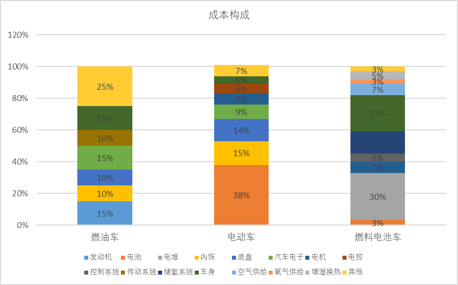 2 燃料电池汽车对传统供应链更友好之所以说燃料电池汽车对供应商来说更友好,主要是因为在我了解了燃料电池汽车后,发现有很多零配件其实和传统燃油汽车上的产品具有一定的共性,这种共性并不代表一模一样,毕竟当代的燃料电池汽车是传统汽车和锂电池汽车的一些优势结合而来的新产品,很多零配件尽管具备共性,但是大多都是在之前的产品中拓展开发而来,也因此,我们会发现,不少如博世、康明斯、蒂森克虏伯、盖瑞特、潍柴动力等传统大型供应商虽然对燃料电池汽车的热情要相对锂电池汽车更高。如空压机,其原理类似于传统汽车上的涡轮或者机械增压系统,只不过驱动方式以及一些细节上有一定的区别,亦或者排气系统,虽然其目的有一定的区别,但是材料和生产链还是有一定的共性。传统零部件企业的电控技术、机加工技术大概也能在燃料电池领域找到一些机会,包括阀门、气瓶、系统集成等。