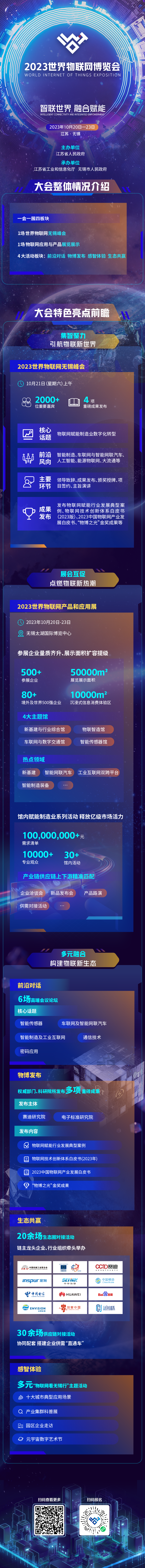 2023世界物联网博览会将于10月20日至23日在无锡举行。本届大会聚焦的特色亮点有以下四个方面: