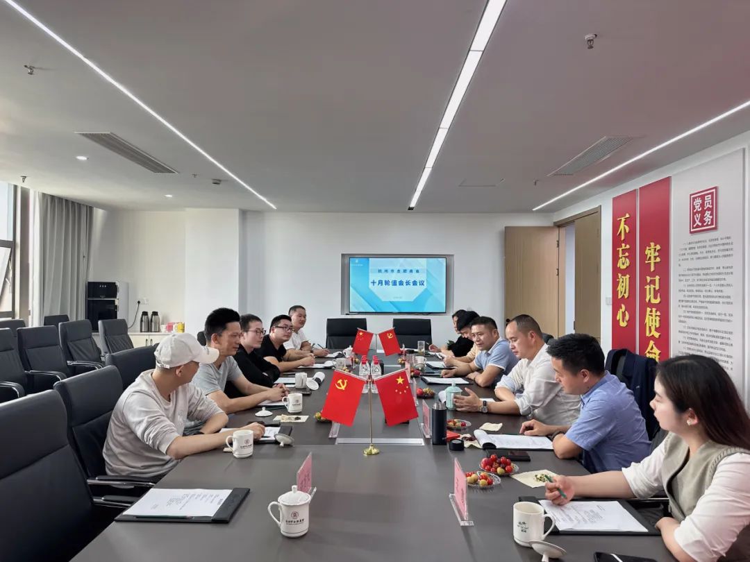 10月11日下午,十月份轮值会长会议在杭州市合肥商会会议室举行。轮值会长孙德胜出席会议,副秘书长吴师达主持会议。我会会长程健,副会长滕康君,监事徐发宏、许方元,理事陈远林,会员王霞、胡杰超,嘉宾束云飞、张龙及秘书处工作人员列席本次会议。