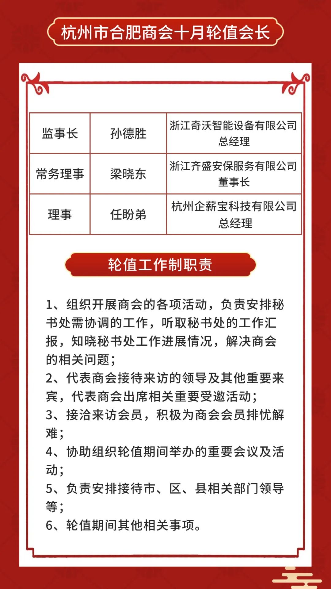 会长程健听取完报告后总结勉励我们:九月份在我们轮值会长和秘书团队的共同努力下,举办的会员专题培训活动和走访企业既凝聚了乡情又加深了资源的对接;对工作整体完成度表示赞扬!希望我们再接再厉,十月继续发扬。同时坚持“走出去,请进来”的理念服务好我们每一位优秀的会员。