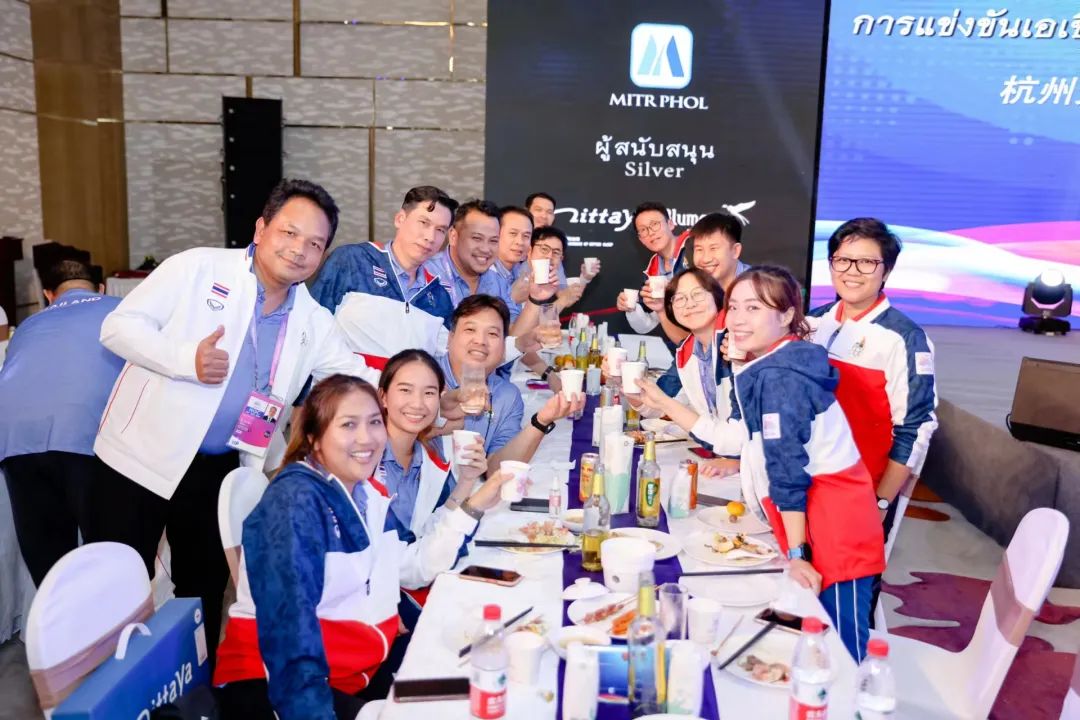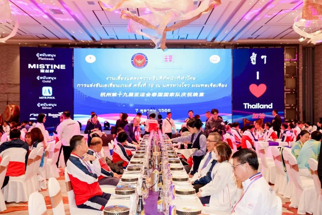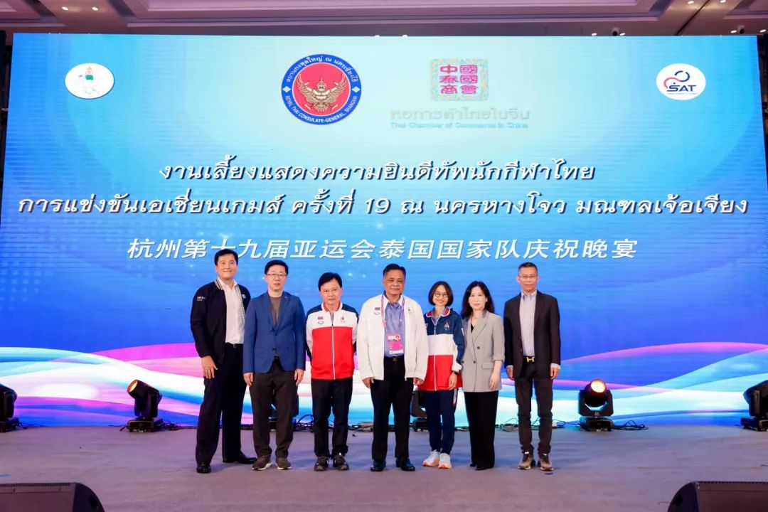 2023年10月7日,泰王国驻上海总领事馆携中国泰国商会在杭州共同举办杭州第十九届亚运会泰国国家队庆祝晚宴,来自泰国奥林匹克委员会,泰国国家体育局,泰国各体育俱乐部,参加此次亚运会的运动健儿们,媒体以及泰籍亚运会自愿者等超过 300 人参加了此次活动。