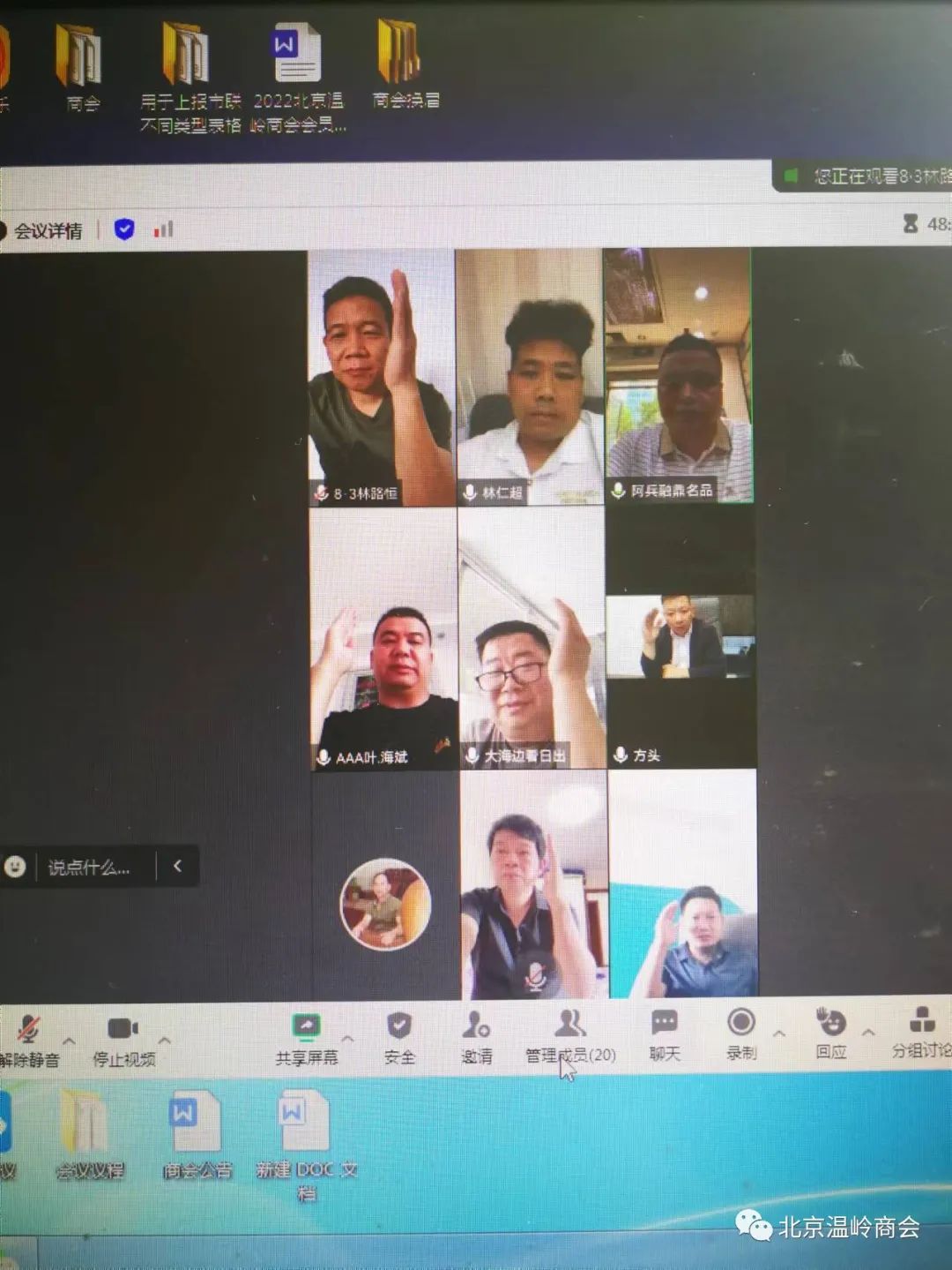 2023年10月11日,北京温岭商会党支部召开党员会议,就预备党员转正事宜进行讨论和表决。参加本次支部会议的有:商会会长张子方、支部副书记陈振礼、支部委员兼秘书长林仁超、支部委员及商会党员,会议由支部副书记陈振礼同志主持,采取线上视频会议形式召开。