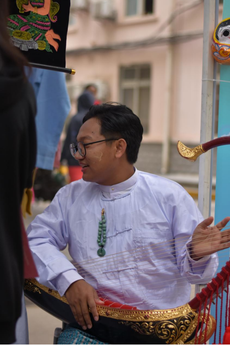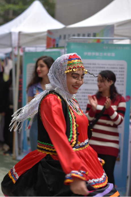 在现场,伊朗和巴基斯坦的同学们载歌载舞,以舞会友,热情洋溢。直到傍晚,活动现场还人头攒动,热闹非凡。来自缅甸的Ye WIN NAING说:“我第一次负责缅甸文化展所以我有点紧张,但是很快就习惯了,工作也很愉快。在空闲时间,我去看看其他国家的文化展,去体验各种不同的文化和风采。我很享受这次的文化节。我觉得这次活动非常棒。”