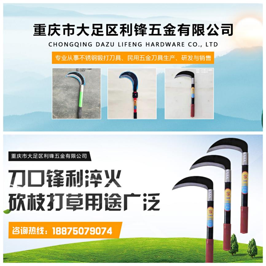 重庆市大足区利锋五金有限公司占地面积 20000 平方米,是一家专业从事不锈钢锻打刀具、民用五金刀具生产、研发与销售的公司。