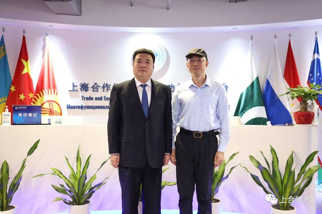 上海合作组织国家多功能经贸平台总干事、重庆市政协港澳台侨和外事委员会副主任胡开强欢迎张勇一行。