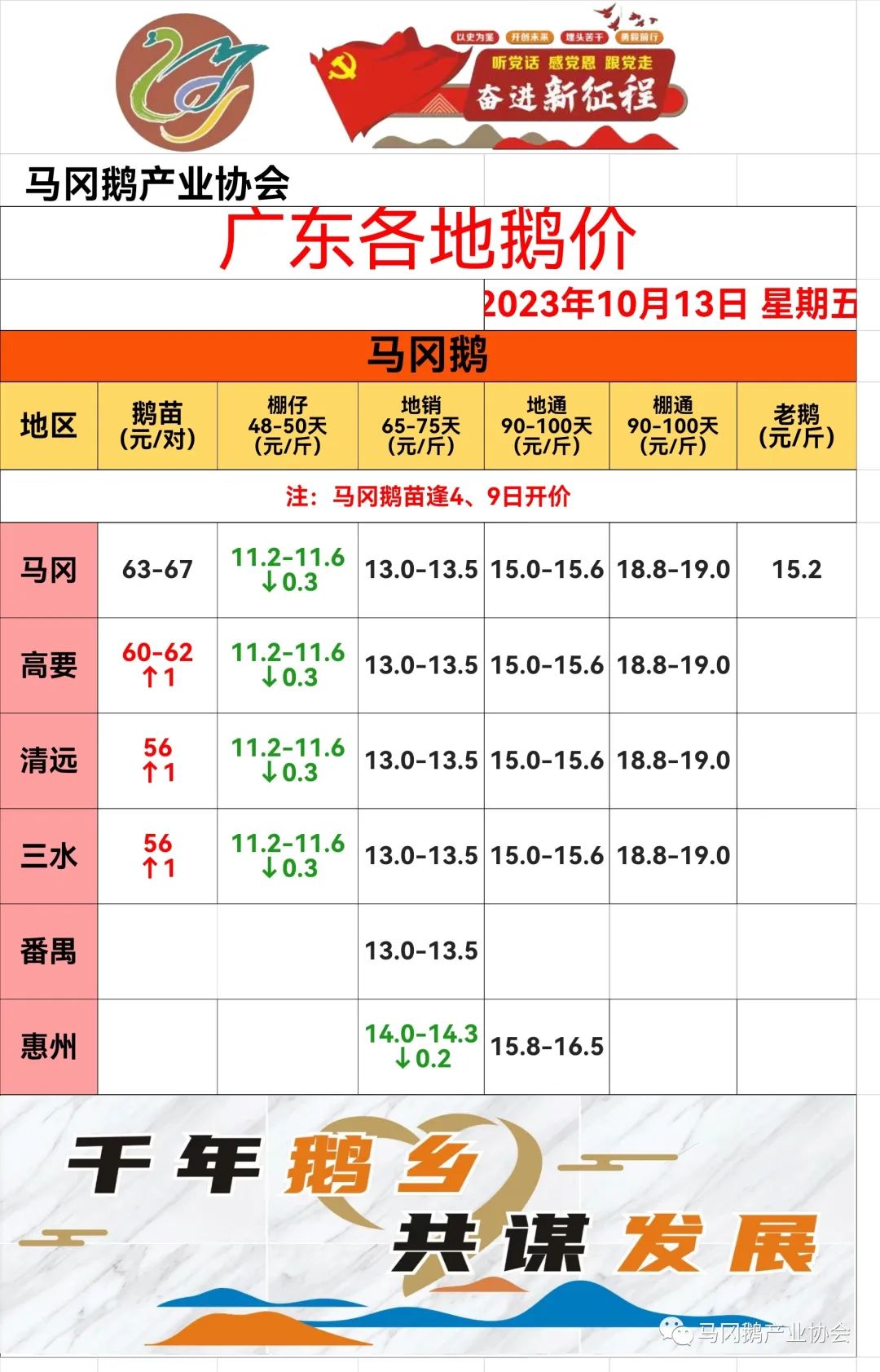 1.以上鹅价消息由开平市马冈鹅产业协会工作人员实地收集,不同地区鹅场均有一定差异,仅供参考!不作为成交依据!不负任何法律责任!如有疑问,请来电咨询!