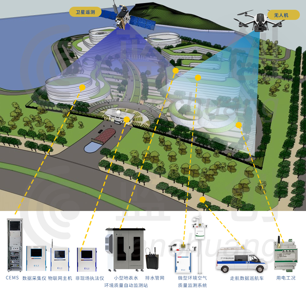 融合了先进的大数据、人工智能、物联网技术,通过采集国标方法仪器如非现场执法仪、数采仪、物联网主机等设备传输的远程执法数据,并结合站房、无人机、走航车、用电监测、卫星遥感等手段,利用执法监管软件平台,将告警数据和一手分析结果提供给监管人员实现非现场监管,为管理者提供监管依据。