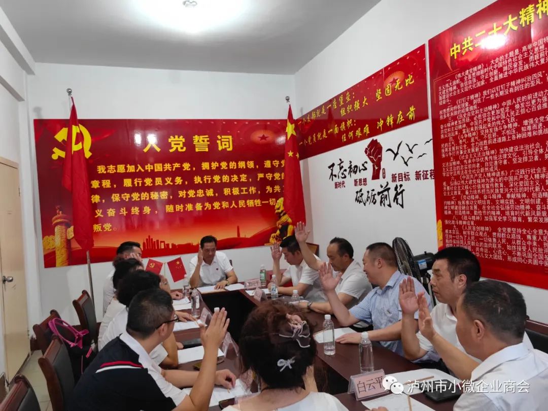 本次会议在继6月12日成立功能型党支部,7月14日获批成立实体型党支部,9月10日正式选举产生了新一届党支部委员会及领导班子,历经疫情后,短短三个月时间,真正意义上恢复了党支部建设,是小微商会发展史上浓墨重彩的一笔,开启了党建引领新的篇章。相信未来党建工作在优秀的领导班子英明领导之下,将一如既往的勇往直前再创新高!中共泸州市小微企业商会支部委员会党员大会圆满成功!