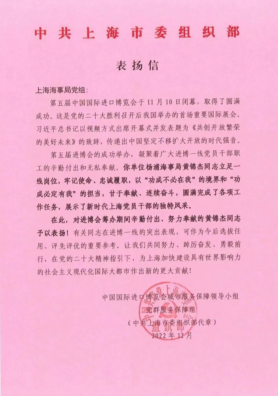 进入直属海事系统三年,他连续三届参与进博会的服务保障工作,曾获中共上海市委组织部表扬信......